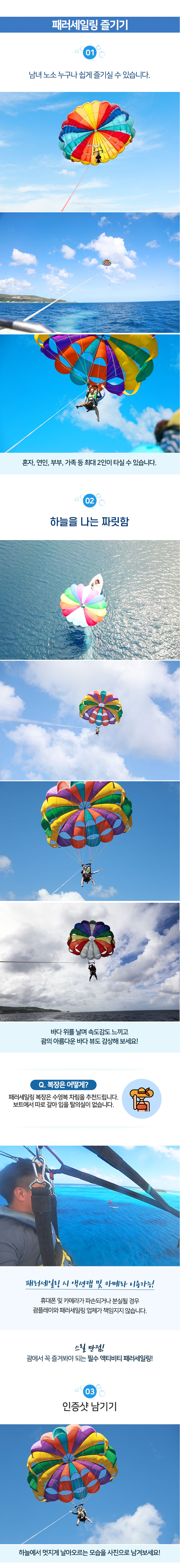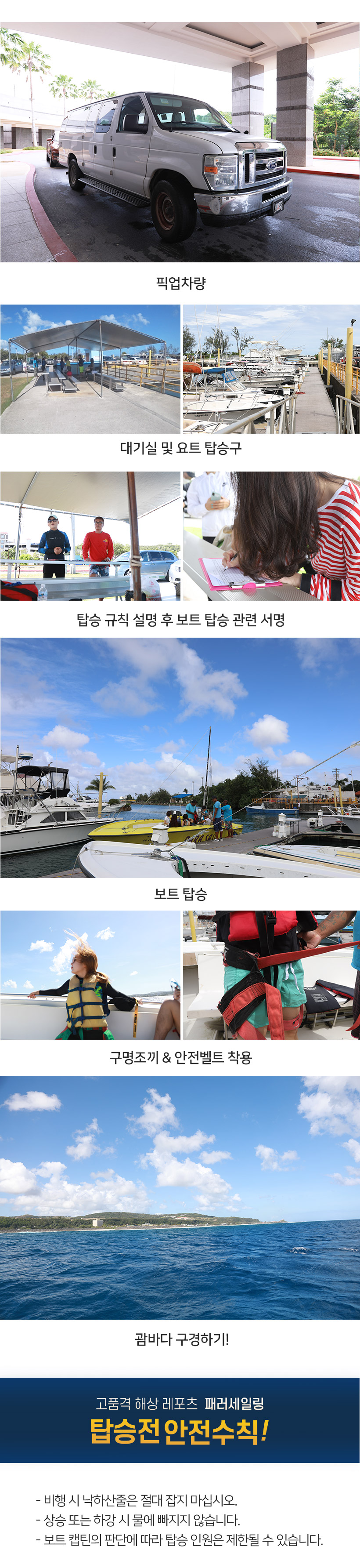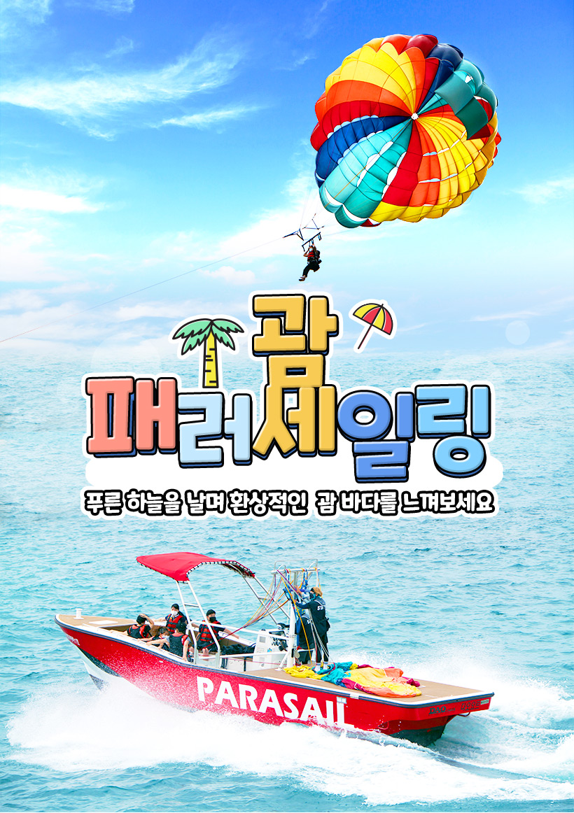 애매랄드빛 바다를 보며 하는 패러세일링은 정말 스릴넘치고 재밌죠~! 다음에 괌 또 가시면 이용해주세요!!♥