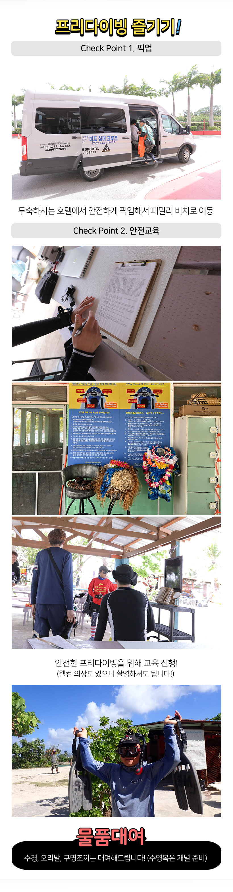 - 물고기에 물리거나 날카로운 산호에 다치지 않도록 개인안전에 주의하시기 바랍니다.