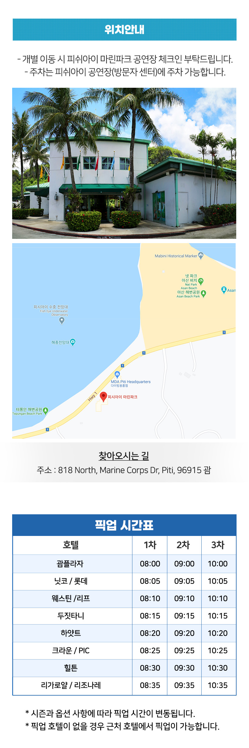 두짓비치, 두짓타니, 괌플라자 투숙객들은 리프 호텔에서 픽업을 받아주세요!
