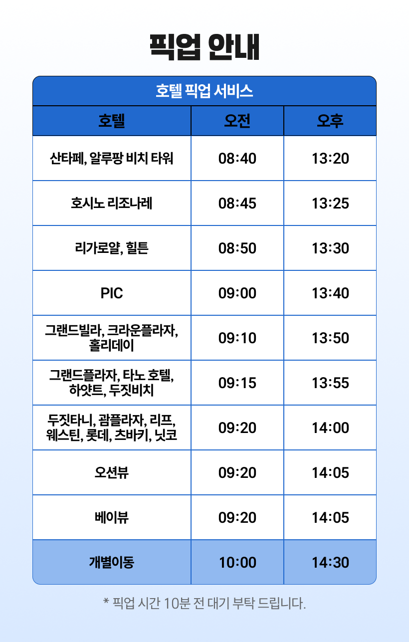 - 호텔 픽업 드롭 서비스