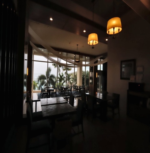 창문 너머로 펼쳐지는 투몬베이의 파노라마 전경은