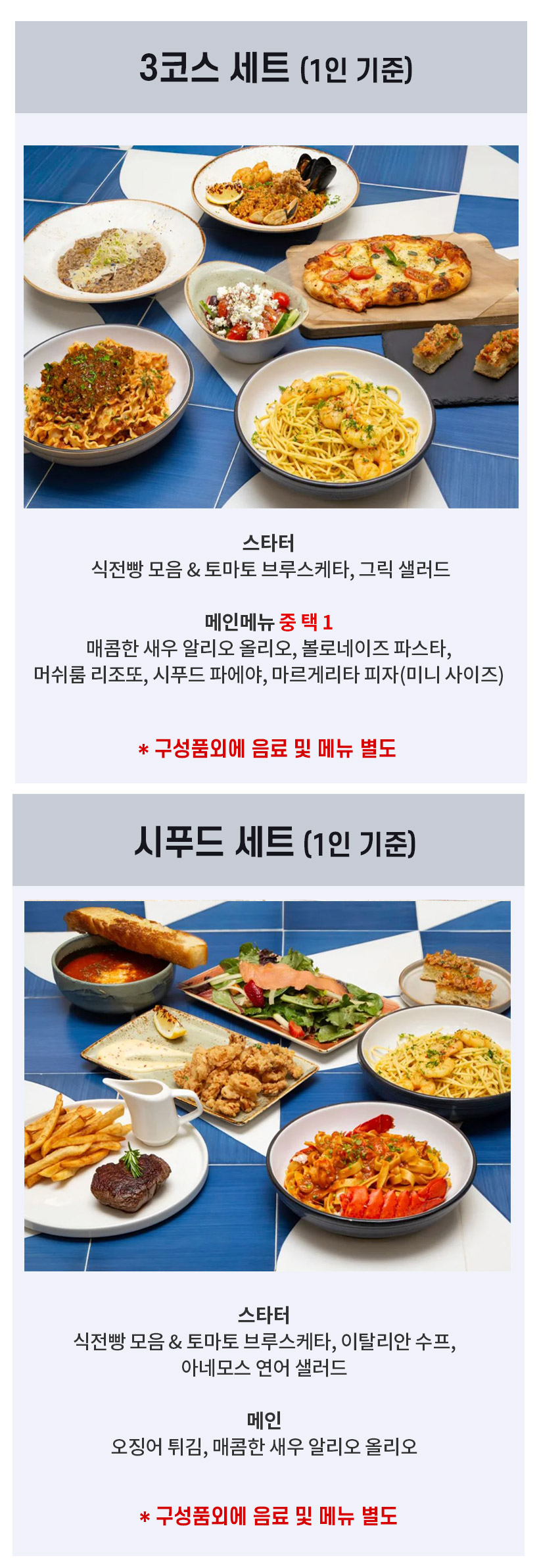 씨푸드 세트, 3코스 세트 식사(성인에 한함)