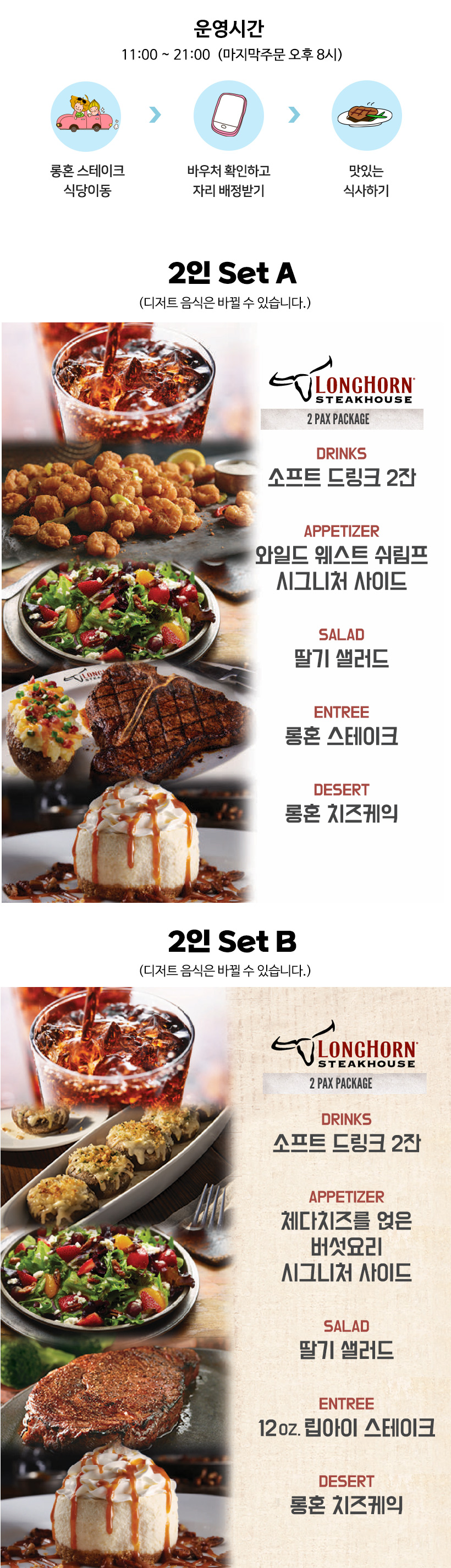 사전에 예약하고 가니 소통해야하는 부분은 스테이크 굽기, 사이드메뉴/음료 선택 이정도였어요~