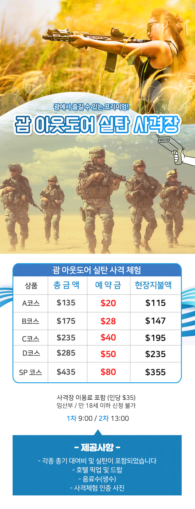 상품 : 괌 아웃도어 실탄 사격장 (09:00)