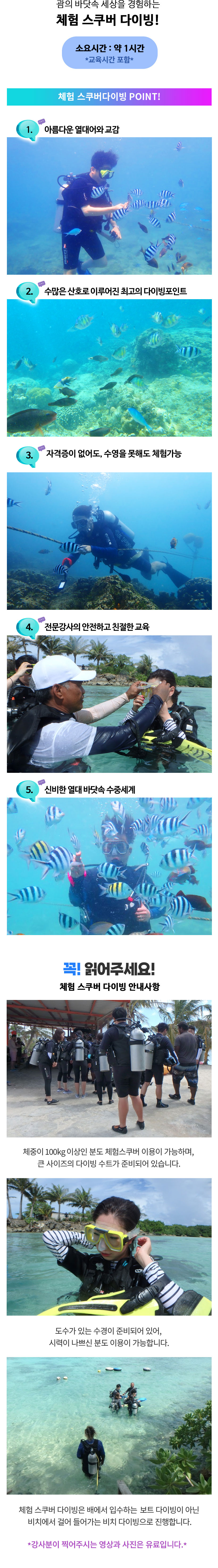- 스쿠버 다이브는 임산부 또는 10세 미만의 어린이는 체험하실 수 없습니다.