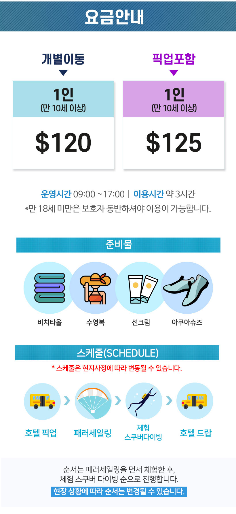 상품 : 패러세일링+체험스쿠버다이빙 (오전)