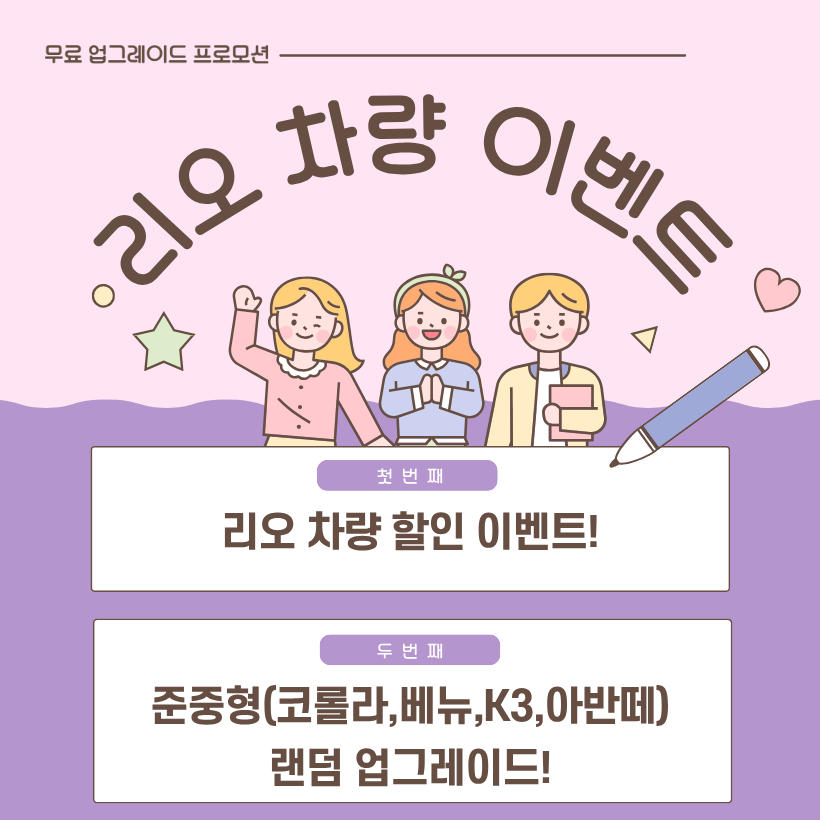 준중형(코롤라, 베뉴, K3, 아반떼) 중 현장상황에 따라 랜덤배정,