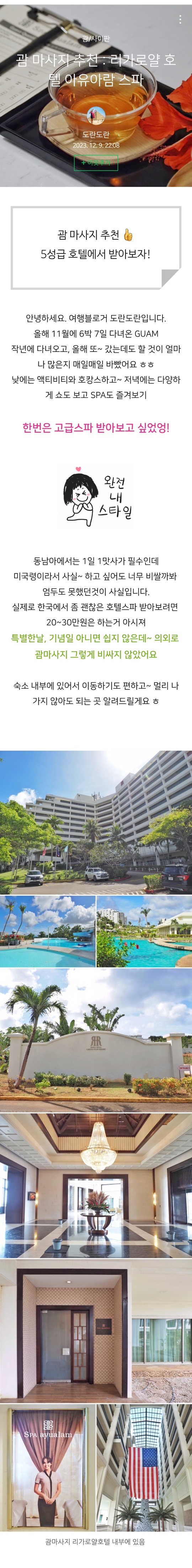 괌 마사지 추천: 리가로얄호텔 아유아람 스파