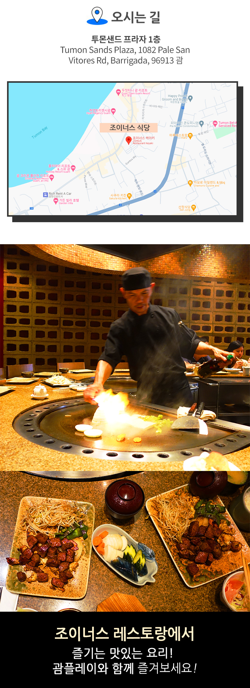조이너스 식당 인기가 많아 예약하기 힘들다고 하는데, 괌플레이에서 미리 테이블 예약하고 갈 수 있어 좋았어요! 역시 고기는 불맛입니다 ! 강추