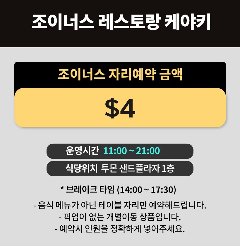 업 체 명 : 조이너스 레스토랑 케야키 (Joinus Restaurant Keyaki)