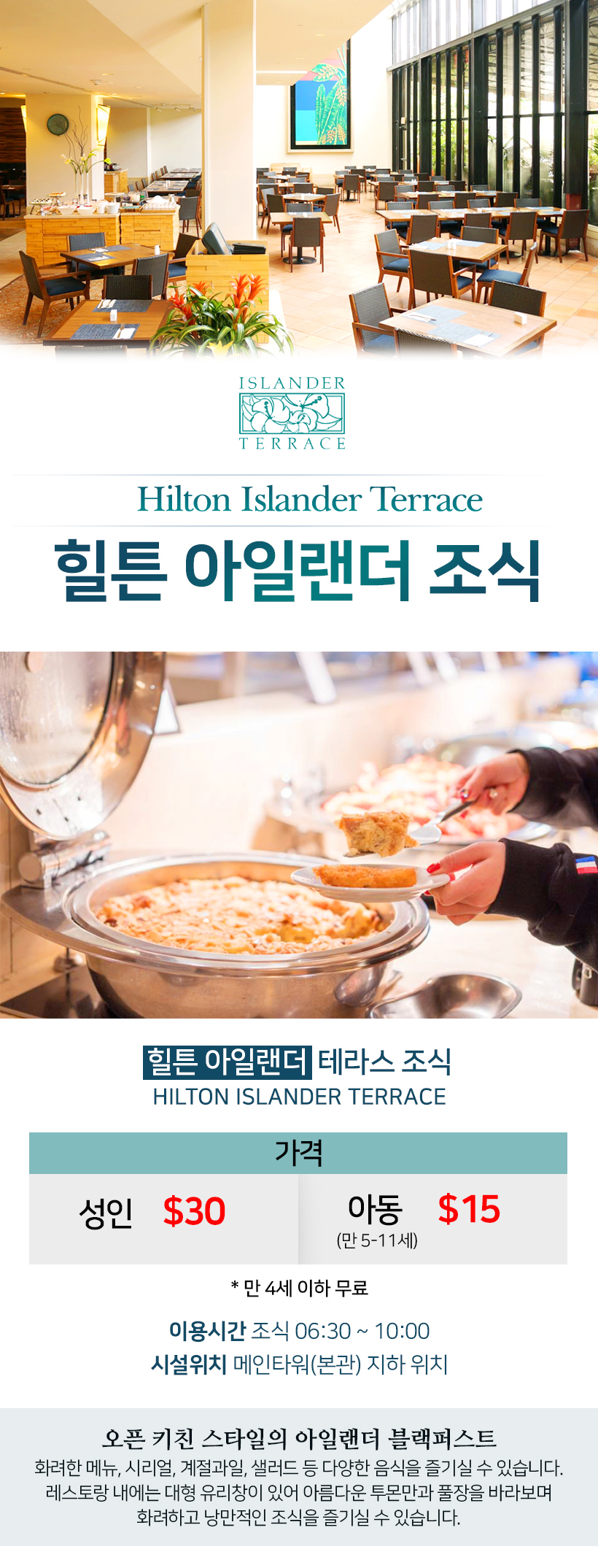 상품 : 힐튼 아일랜더 테라스 조식 (06:30~10:00)
