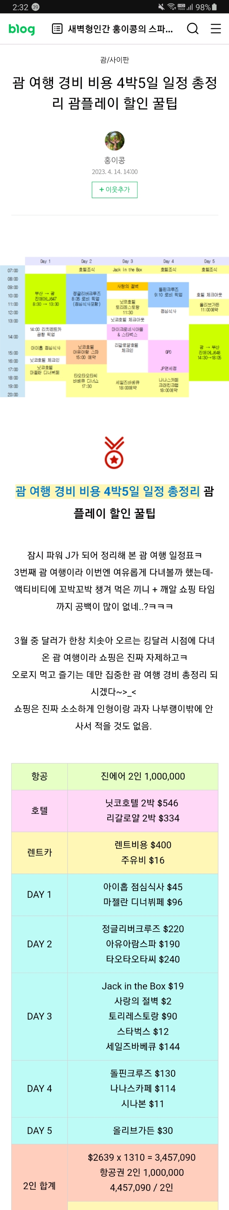 홍이콩님의 괌 여행경비 4박5일 총 정리 후기