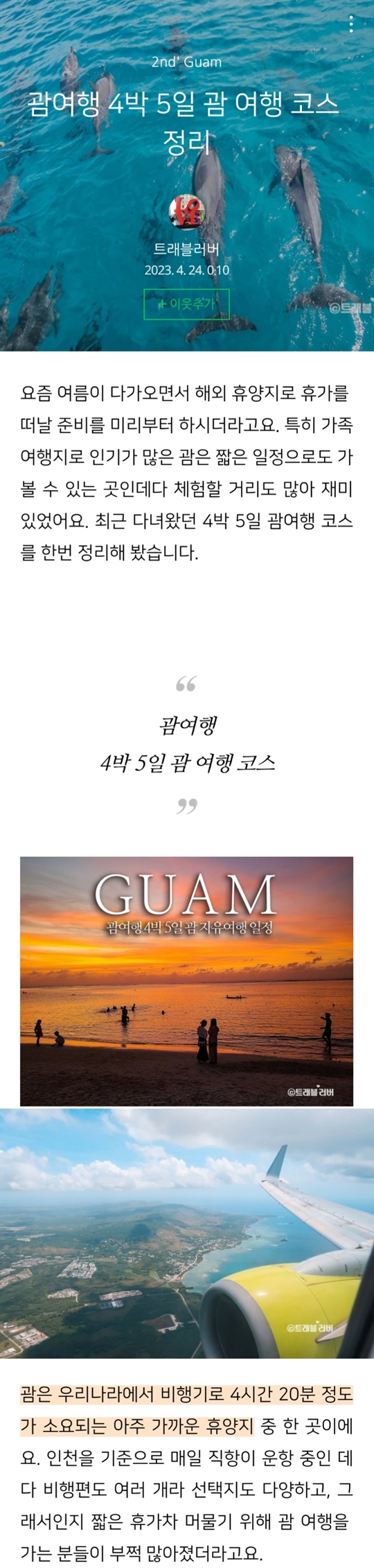 트래블러버님의 괌 여행 4박5일 코스 정리