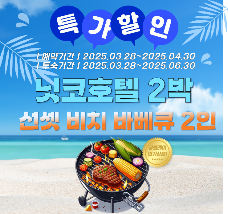 | 제목 | [4월 이벤트] 닛코호텔 2박 + 선셋 비치 바베큐 2인 특가! | ||